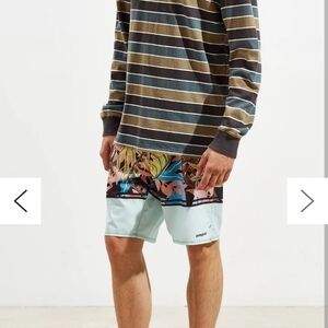 Printed trunks from Patagonia, cut from recycled poly + spandex with four-way stretch and a DWR (durable water repellent) finish. Streamlined fit maximizes fabric stretch while curved waistband contours to the natural shape of the hips to keep boardshorts in place during movement. Finished with self-draining pocket on right hip has a noncorroding, recyclable plastic zipper with internal key loop and zipper pull for easy use.
