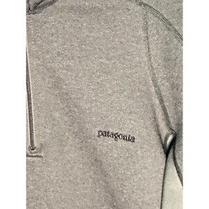 The Patagonia Stretch Velocity 1/4 Zip Fleece Pullover in Army Green is a versatile and comfortable activewear piece perfect for outdoor activities in colder weather. Made of 94% polyester and 6% spandex, this pullover features a stand-up collar and long sleeves, making it great for skiing, hiking, and other cold weather sports. The embroidered logo accents add a touch of style, while the 1/4 zip closure and stretch fabric provide ease of movement. With a regular fit and machine washable care instructions, this pullover is a practical and reliable choice for men looking to stay warm and active in the outdoors. No rips, tears, holes, or stains. Som light signs of pilling on the sleeves.