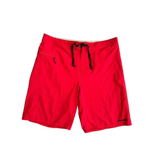 These Patagonia Stretch Wayfarer Boardshorts Trunks are perfect for any beach or outdoor activity. With a solid red color and a beachy theme, they are sure to make a statement. The trunks are made from stretchy material, providing a comfortable and flattering fit for any body type.