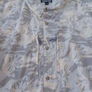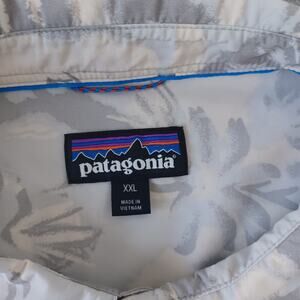 Patagonia Sun Stretch Shirt Mens 2XL Beige Button Up Cliffs and Waves Hawaiian