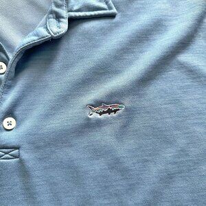 Patagonia Sunshade Polo Shirt Tarpon Fitz Roy in Berlin Blue. With 50+ UPF, highly breathable sunshade material, fresh durable odor control and all day comfort in hot humid weather, this is a great every day or going out dinner shirt. 3 button placket. shirt. Outdoor shirt. *AI cover photo.