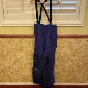 Patagonia Suspender Pants, Ski, Snow, Snowboard, Size 32 (Large), Women’s, Purple, Pockets. Preowned. Gently worn, some wear at the hems.