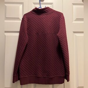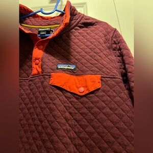 Gently used Patagonia sweater. Size large but fits a bit larger and longer in length for me. Color is more like burgundy.
