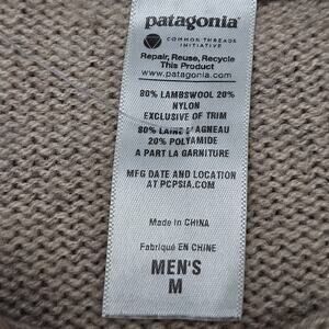 Patagonia Sweater M Tan Lambswool Nylon Knit Crewneck Striped Sleeve Casual