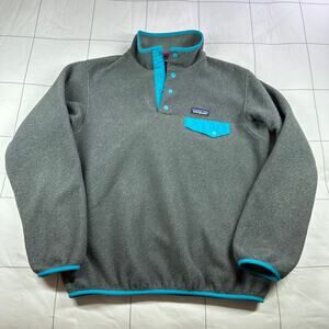 Patagonia Sweater Womens Medium Gray Blue Synchilla Snap T Fleece Pullover Hike