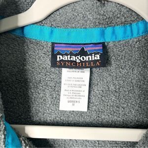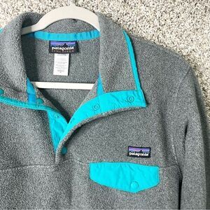 Excellent used Condition Women’s Patagonia Dark Grey and Blue Lightweight Synchilla Snap-T Fleece Pullover Sweatshirt Jacket in Size Medium