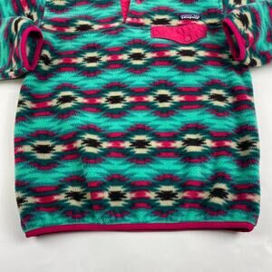 Patagonia Synchilla Aztec Tribal Western T-Snap Fleece Pink & Blue Size Small