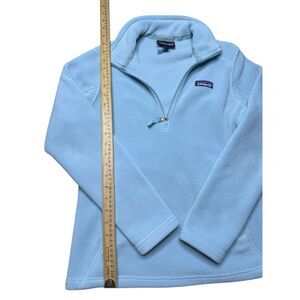 Patagonia Synchilla Fleece 1/4 Zip Pullover Women’s S Light Blue Outdoors Zip Up The color was hard to capture due to lighting. The default picture is the accurate color. Some photos look a little darker or lighter. This pullover is in good condition with no rips, holes or stains. A very small amount of wear on the left elbow but it’s barely any.