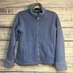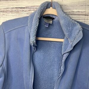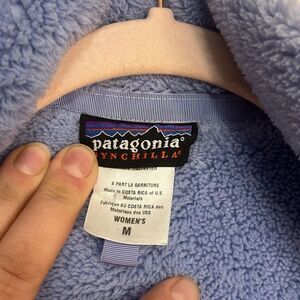 For sale in great preowned condition is this Patagonia Synchilla Fleece Full Zip Jacket Womens M Sherpa Mesh Pockets Blue