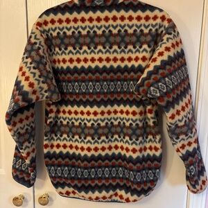 Barely worn blue, orange and cream colored men’s cut Patagonia Synchilla Fleece. This is in basically new condition.