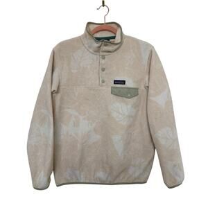 Patagonia Synchilla Lightweight Snap Pullover Sweater Cream/Green Leaf Pattern