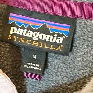 Patagonia Synchilla Lightweight Snap-T Color Block Quarter Snap Fleece Pullover in Gray/Purple/Pink size Medium