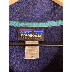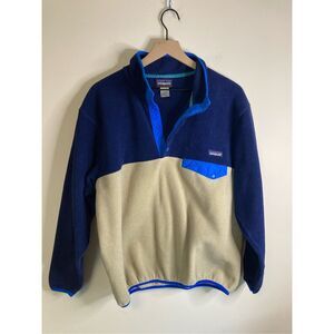 Patagonia Synchilla Mens Medium Pullover Sweatshirt Blue Taupe 1/4 Button