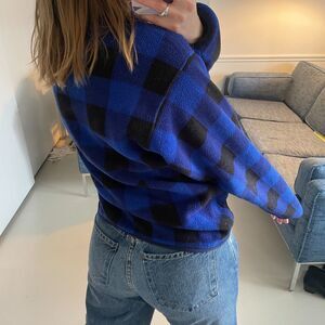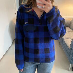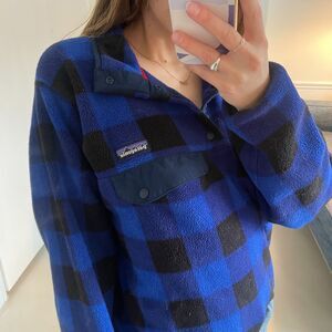 Patagonia Synchilla Plaid Check Snap Pullover Fleece Jacket Blue Men's X-Small
