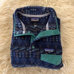 Patagonia Synchilla Re-Tool Blue and Green 1/4 Snap Pullover Fleece Jacket