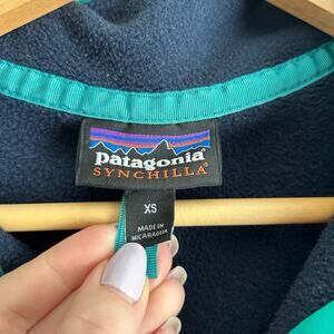 Condition: Excellent, preowned condition! Details: Patagonia Synchilla Snap Pullover Sweatshirt- Size: XS- Color: Navy Blue & Teal - Material: 100% Polyester- Features: Snap button closure, embroidered logo, long sleeve, fleece fabric, raglan sleeve, comfort, breathable, outdoor, casual. Love the item, but not the price? Make me an offer! Bundle with 900+ other items available for sale in my closet!