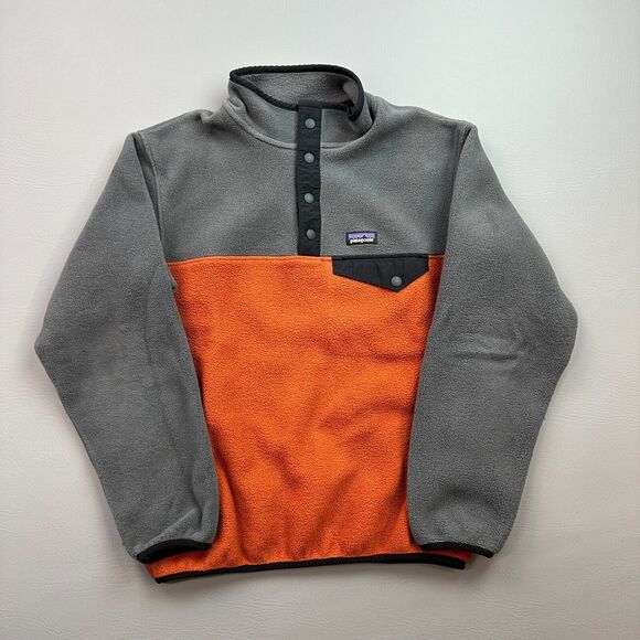 Patagonia Synchilla Snap T Jacket Boys Large Orange Gray 1/4 Snap Fleece 65572 Item is preowned with normal signs of wear but no major flaws. Please refer to the pictures for measurements and fit. This item was only given a simple wash but please clean the item to your liking prior to wearing. See pictures above for further details and condition. Any questions please feel free to ask. Fast Shipping! Items like this listed daily. Make sure to follow to get the latest discounts and coupons!