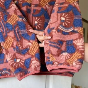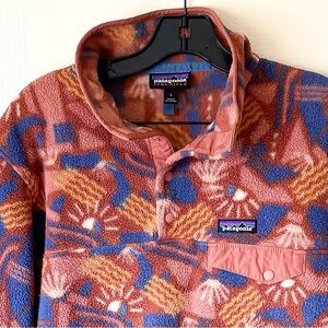 Tags: Patagonia fleece, Patagonia Synchilla, retro fleece, Aztec print jacket, brown fleece pullover, outdoor hiking layer, cozy winter pullover, women’s Patagonia, recycled polyester fleece