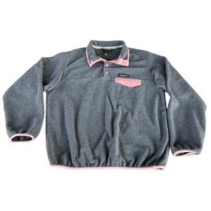 Patagonia Synchilla Snap-T Fleece Pullover. Women’s size medium. Gray with Peach/Pink accents. Good preowned condition with light wash wear.
