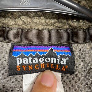 Patagonia Synchilla Womens Full Zip Fleece Vest Olive Green Logo Size Small