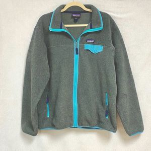 Patagonia Synchilla grey and teal blue full zip jacket. Only worn once!