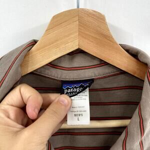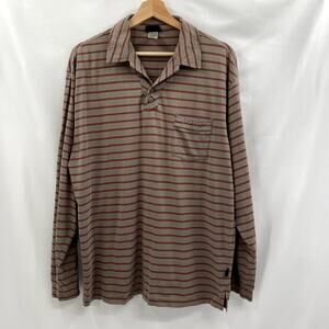 Patagonia Tan Striped Henley Long Sleeve Polo