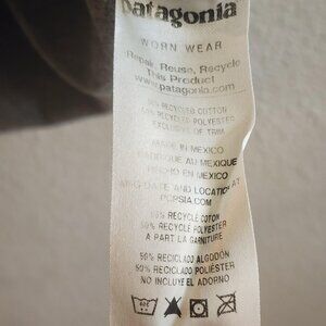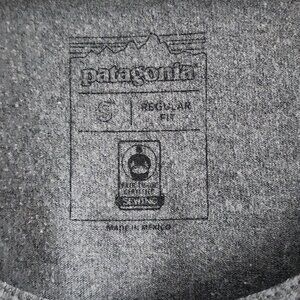 Features small Patagonia logo on left chest and large classic Patagonia mountain logo on the upper back