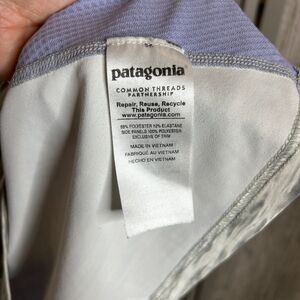 Patagonia Top 1/4 Zip Gray Purple Thumbholes Mock Neck Size XL