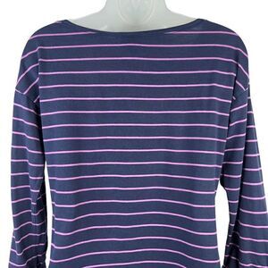 Patagonia Top Shallow Seas Size Medium Navy Blue Purple Striped Long Sleeve