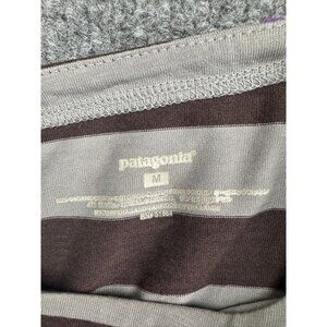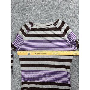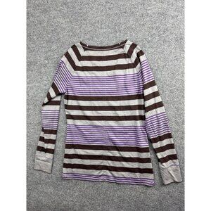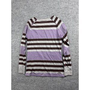 Patagonia Top Women's M Brown Purple Stripe Long Sleeve Button Shoulder Raglan