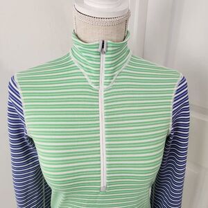 Patagonia Top Womens XS Green Striped Capilene 3 Midweight 1/4 Zip Baselayer