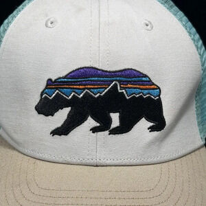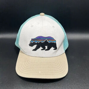 Patagonia Trucker Hat Unisex Teal Back Mesh Snap Back Bear Mountains
