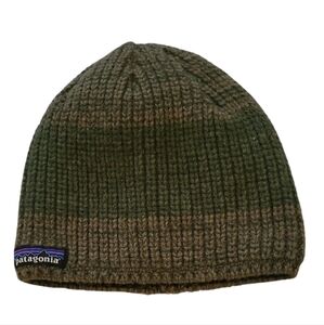 Patagonia Two-tone Green Wool Blend Beanie Hat Worn Wear Warm Unisex Outdoors