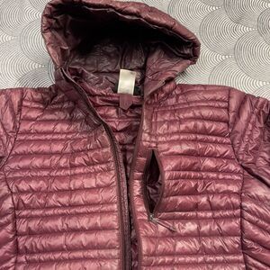 Stay warm and stylish with this Patagonia Ultralight Goose Down Hooded Jacket in a beautiful maroon color. The jacket features a full zip closure, long sleeves, and a mid-length cut, making it perfect for travel, casual wear, or workwear. It is made of durable nylon outer shell material and has a solid pattern that is easy to match with other outfits.
