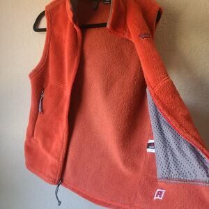 Patagonia Vibrant Orange Fleece Vest Women's Size S. Preowned. Zipper Pockets. Zipper Closure. Polartec. Vibrant orange fleece vest by Patagonia. Soft texture with zippered pockets. Good Condition. Smoke free Home. Offers Welcome.