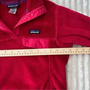 Warm and stylish fleece jacket by Patagonia. Features a vibrant red color with subtle pink accents.