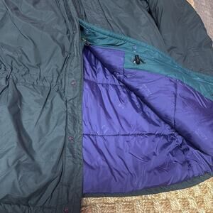 Down jacket. Vintage style in great condition!! No hood. Exterior is navy blue. Interior is purple. Enjoy it!