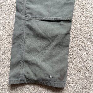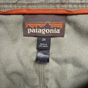 Patagonia VERY WELL WORN men's 34 waist work pants. They have many many sap marks, which can be taken out with nail polish remover if chosen to. They have a couple rips pictured, and are sun bleached which is also pictured.