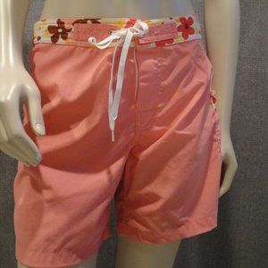Board shorts are women's size 6...velcro and drawstring closure, side pocket w/velcro closure, 5" inseam