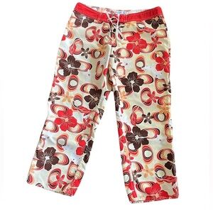 Patagonia Water Girl capri Pants surfer board style tie close Hibiscus