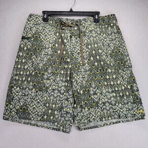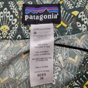 Description: Patagonia Wavefarer Board Shorts Floral Green Button Fly Beach Vacation Swim Trunks Swimming