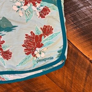 Classic Patagonia Wavefarer Boardshorts featuring a vibrant tropical floral print and teal trim. Made from lightweight, quick-drying recycled nylon, these shorts are perfect for surfing, beach days, or laid-back summer wear. Durable, eco-friendly, and built for comfort with a secure tie waist.