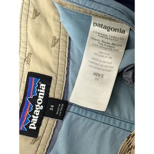 Keywords: Patagonia, Board shorts, Swim trunks, Mens, Size 34, Striped, Blue, Beige, Nylon, Swimwear, Beach, Summer, Surf