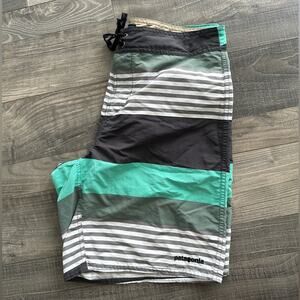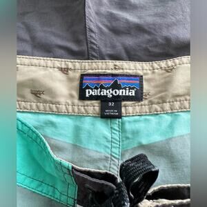 Men size 32 tie string swim trunks. Normal wear with side pocket. A Patagonia classic, the Wavefarer® Board Shorts are the foundation of their board short collection.