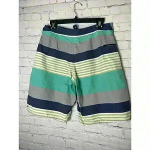 Patagonia Swim Trunks Wavefarer Board Shorts Mens 32 Medium Striped Swim with left leg logo