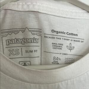 This Patagonia short sleeve tee in white offers a classic crew neck design, perfect for casual outings. Made from soft cotton, it ensures comfort and breathability throughout the day. The subtle logo on the chest adds a touch of style to this versatile piece.