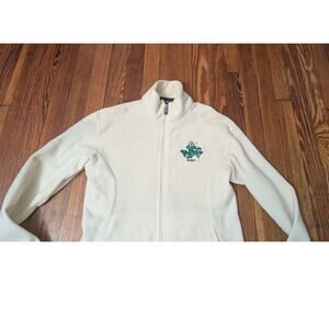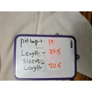 Patagonia White Womens Medium Fleece NWT. The logo is frayed where it was attempted to be removed, the measurments are in the pictures.