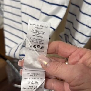 Patagonia White and Blue Stripe Cuffed Quarter Sleeve Tee Size Large