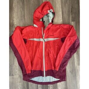 This Patagonia windbreaker jacket for women is perfect for all your outdoor activities. The jacket is made of polyester and comes in a red and gray colorblock pattern. It features a mid-length design with a full zip closure and a pocket for your belongings. The windbreaker has a lightweight design, making it suitable for winter, fall, and spring seasons.