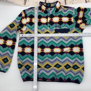 Patagonia Womans LG Synchilla Snap T Fleece Timber Twist Navy Green Yellow